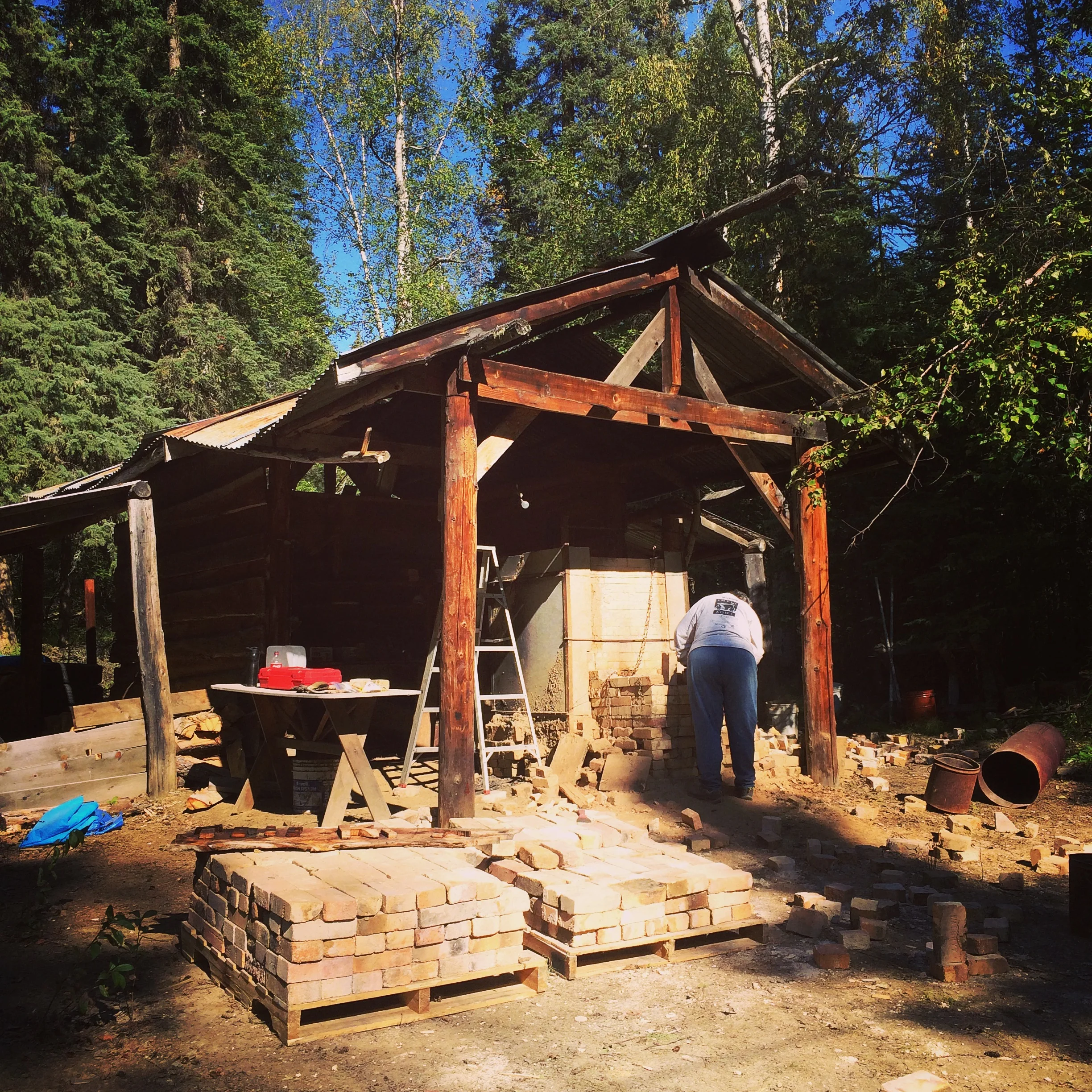 Hello everyone! The countdown for the thesis continues, and since things at the studio are partially in kilns currently being fired, I thought I'd give an update on the Liz Berry Kiln. It's been a long process, but we're making some great progress under the direction and coordination of Diana Berry! The second chapter is being written and we're rebuilding this piece of Fairbanks history at the Fairbanks Folk School.