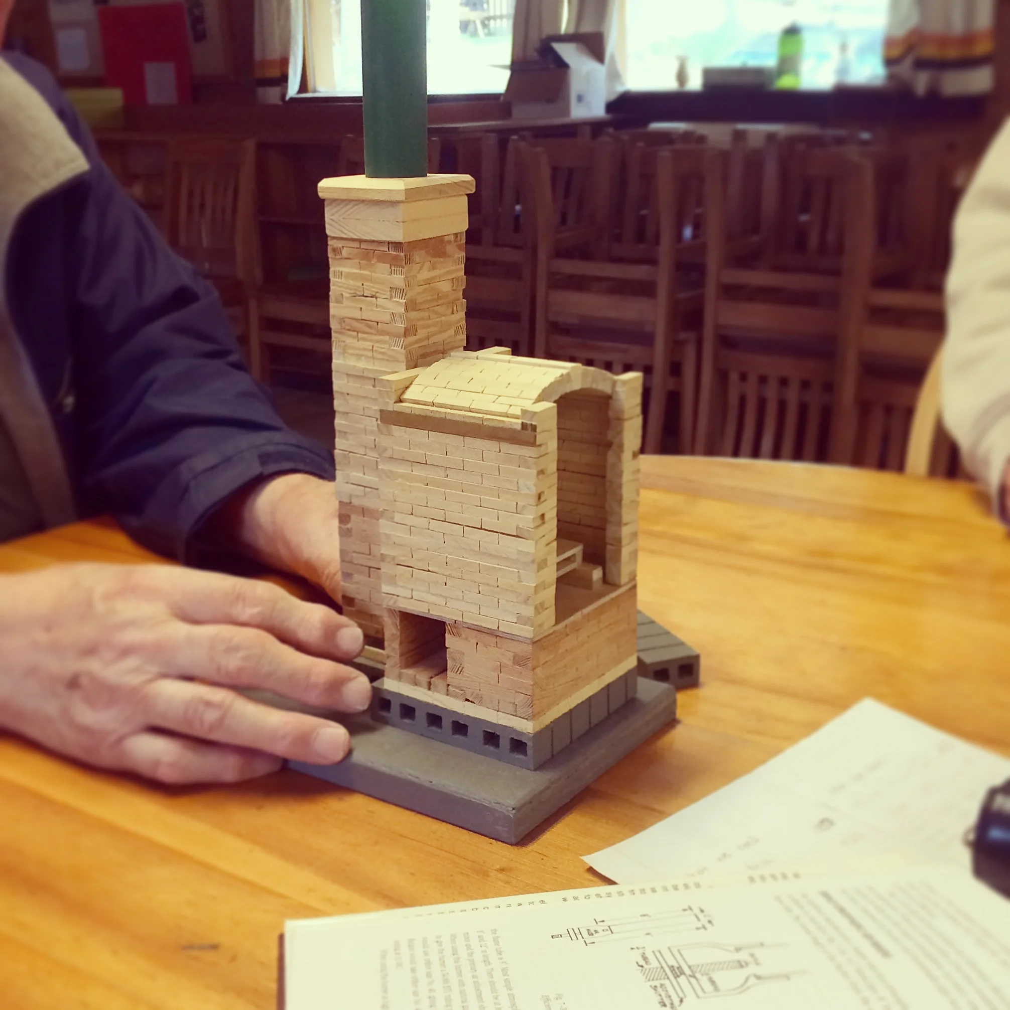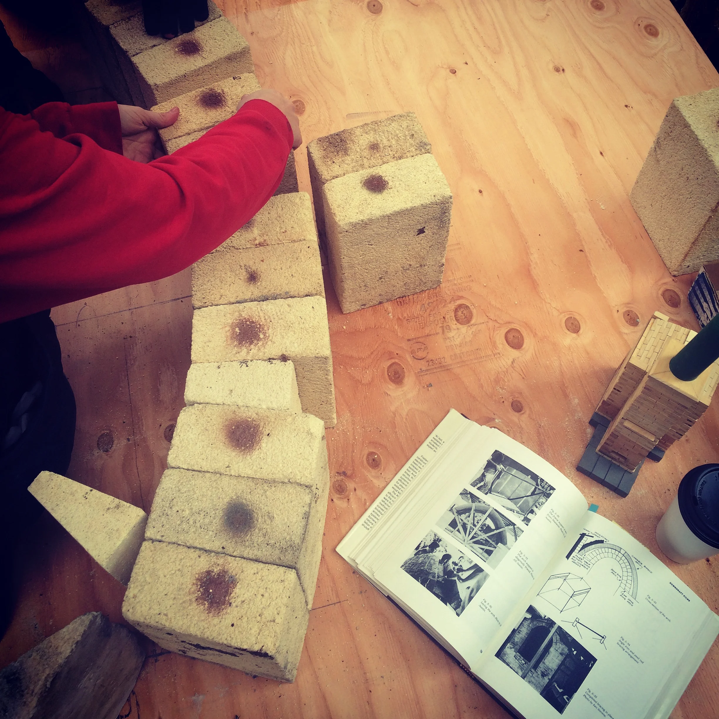 Planning the arch with the aid of the book and the model, of course!