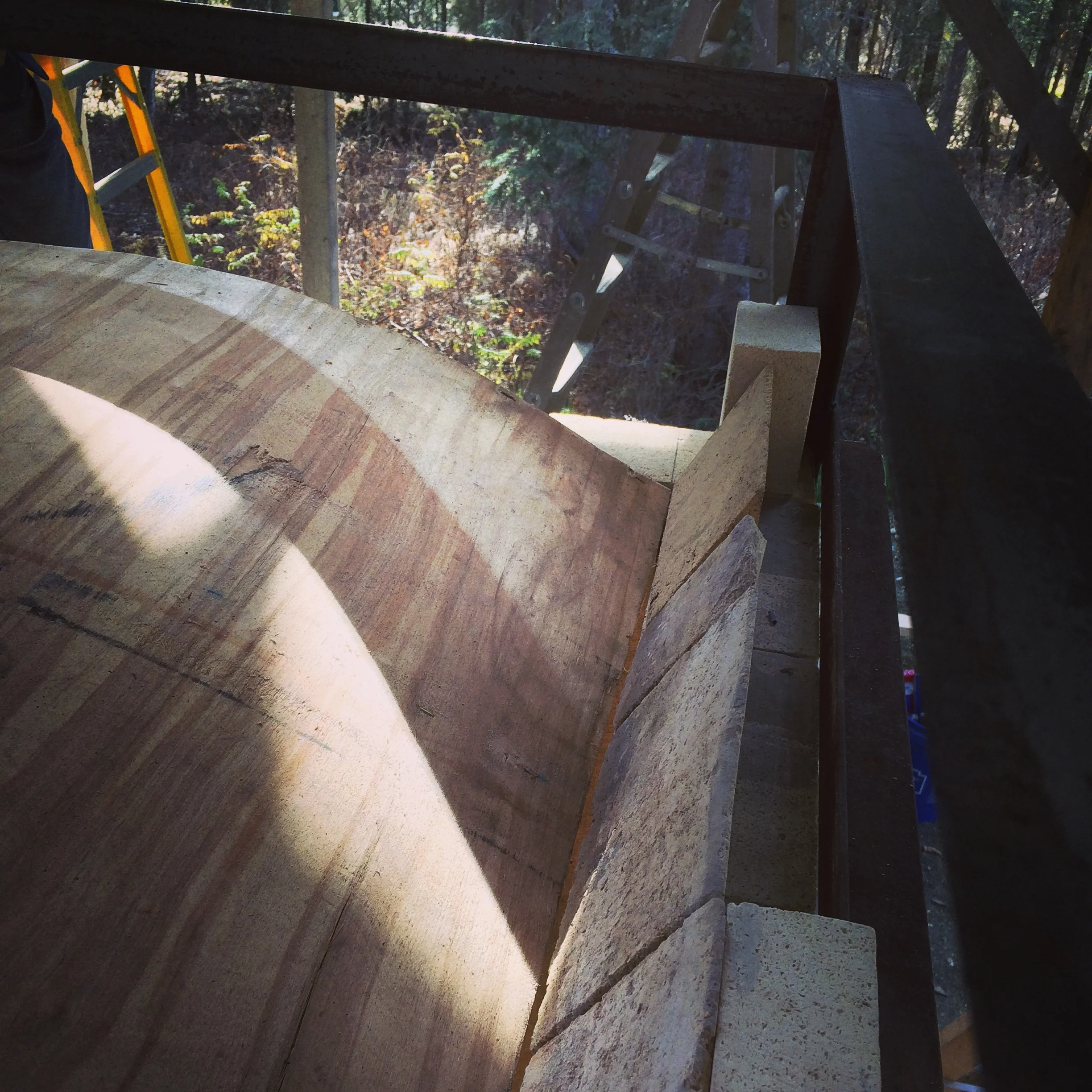 The arch is done! Now the fun part..pulling out the form which is supported by four posts with a small block of wood on each for "easy" removal.