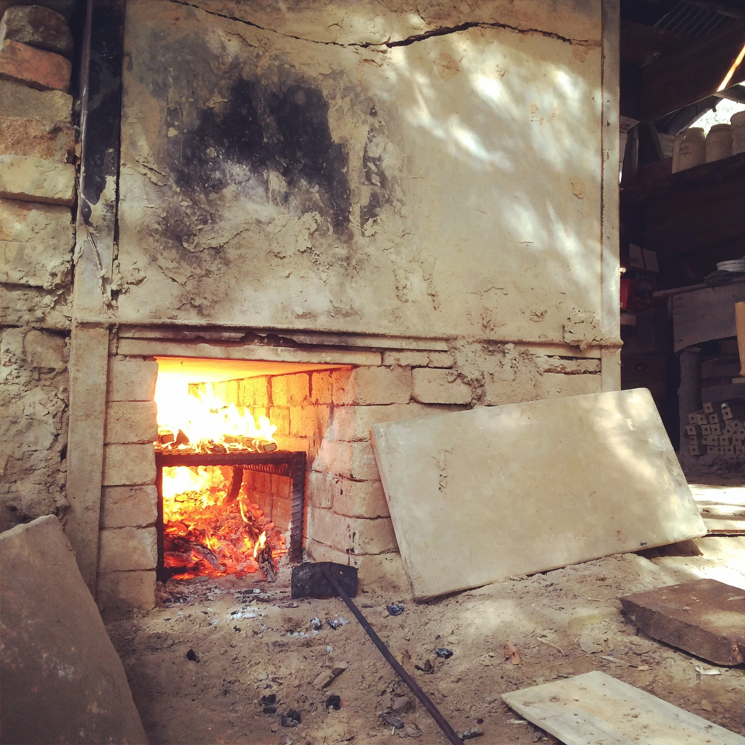 Local potters made work specially for this last firing of the historic kiln. Getting them lined up and ready to go!